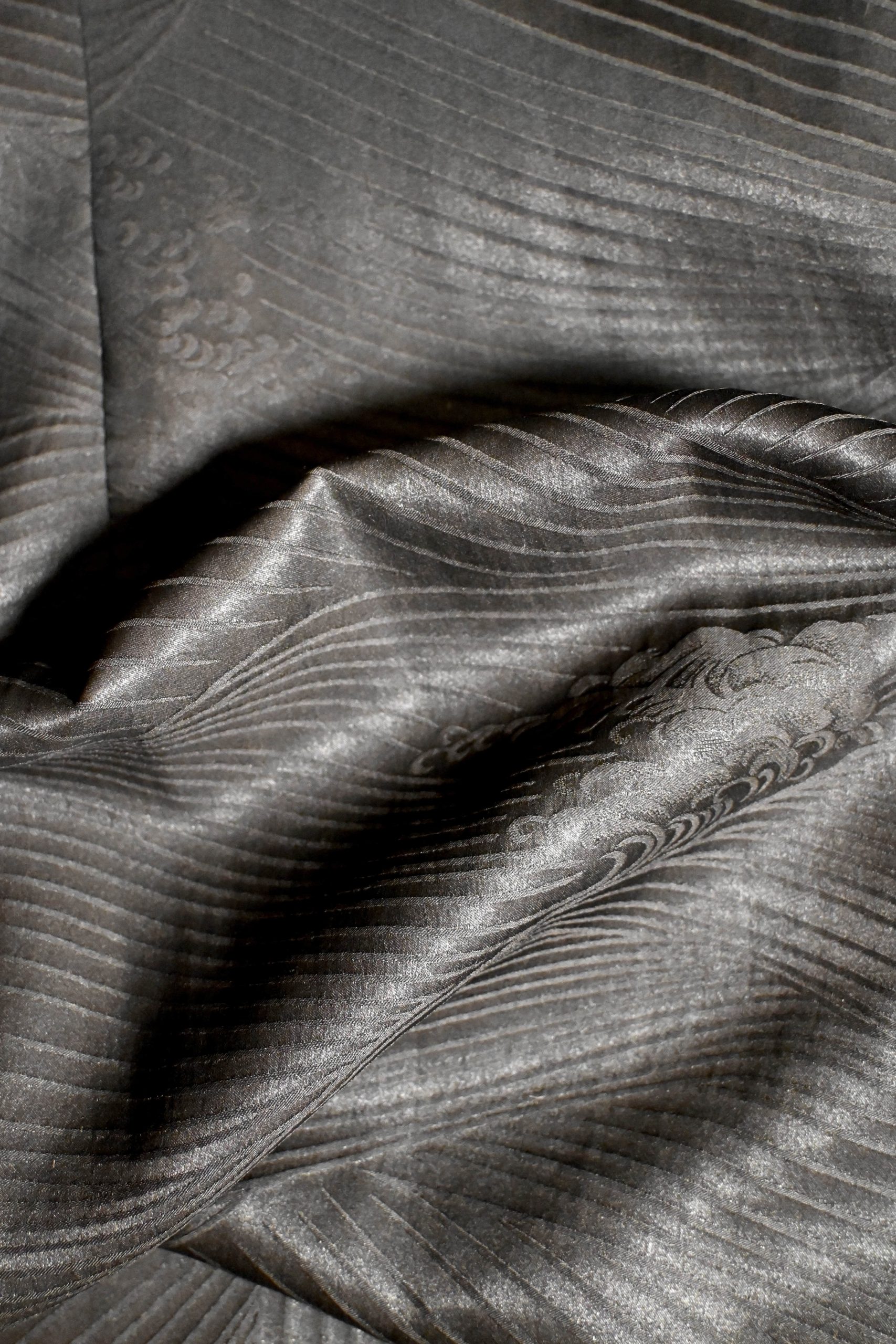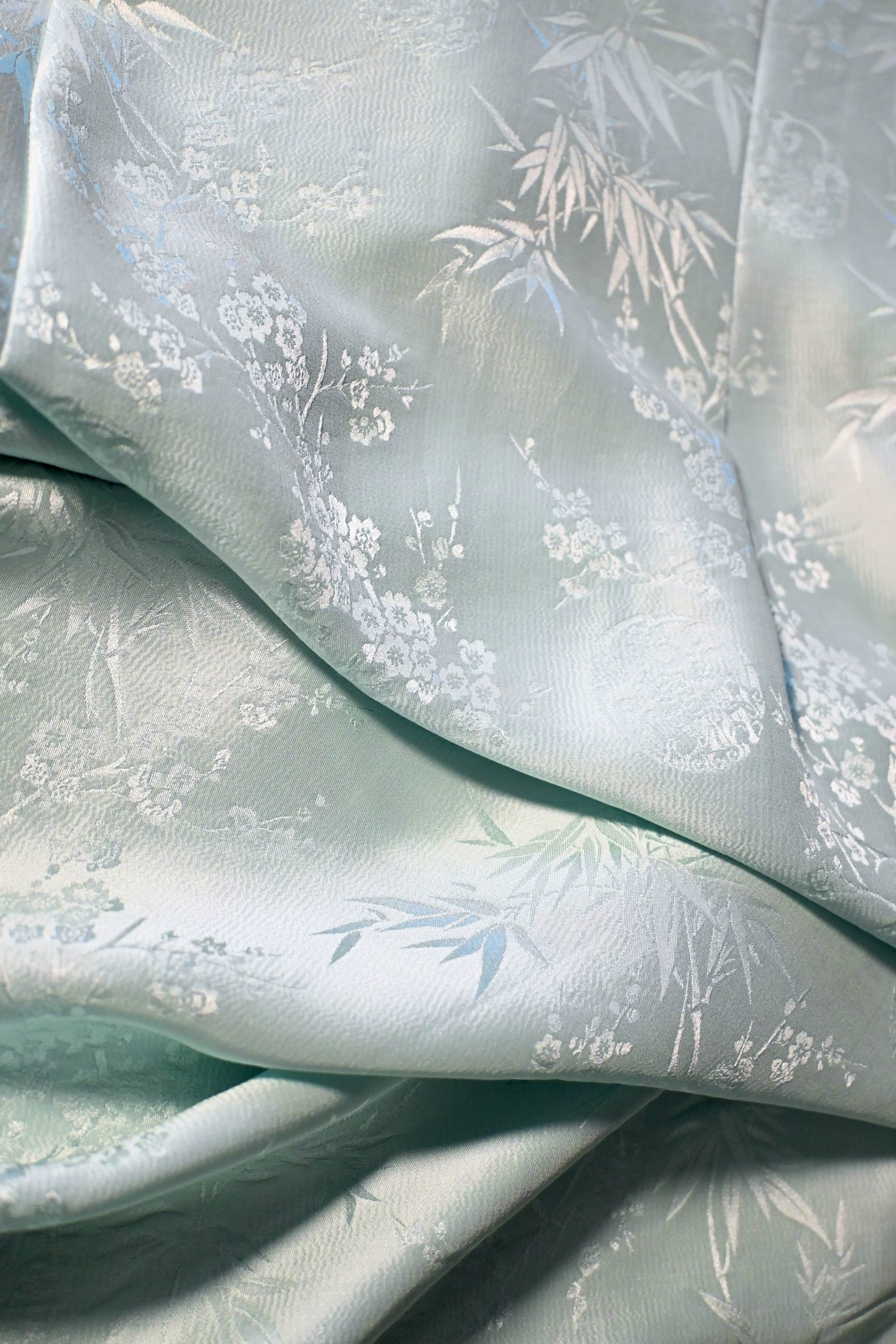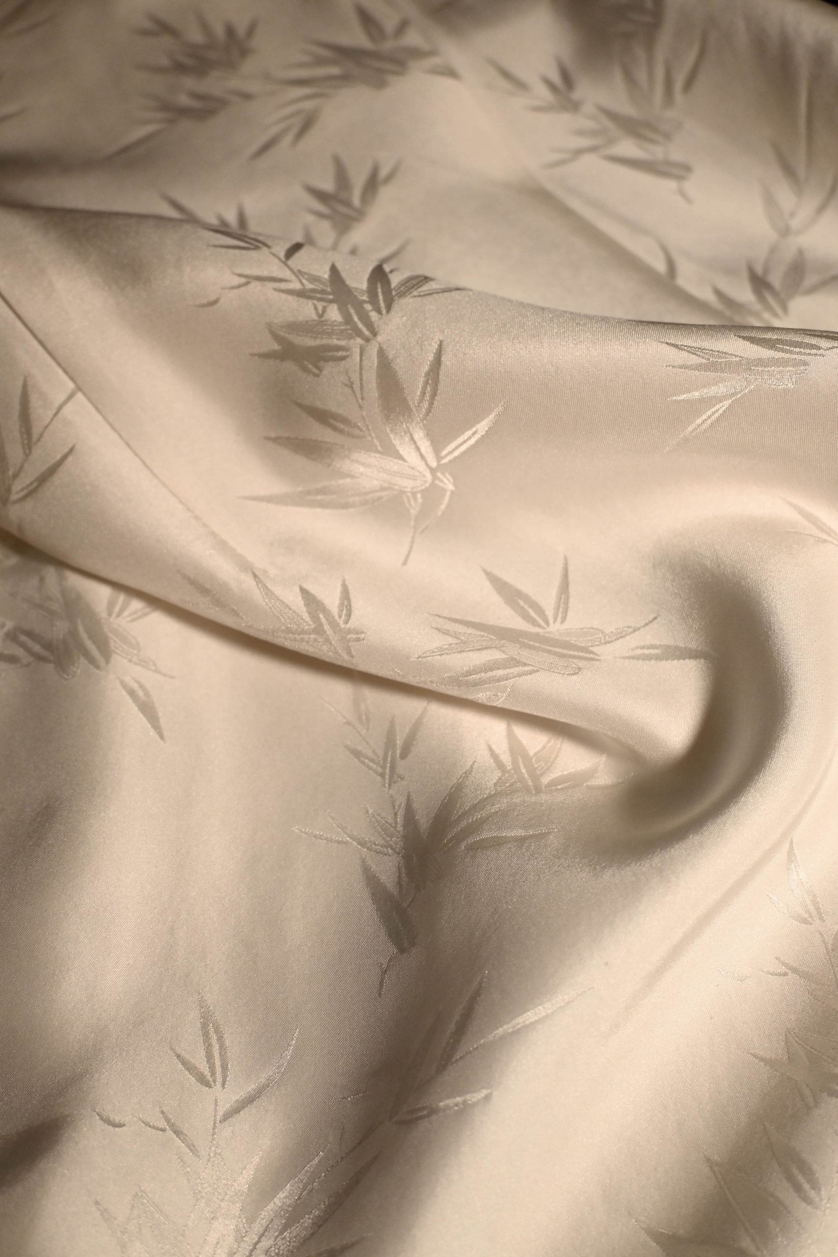 我们多选用天然面料,例如冠乐绉、双绉、砂洗真丝、香云纱、双宫丝、花罗等。不同织法的真丝面料带来丰富的选择,每一款面料的肌理、厚度、光泽感、透光度等也都有不同。