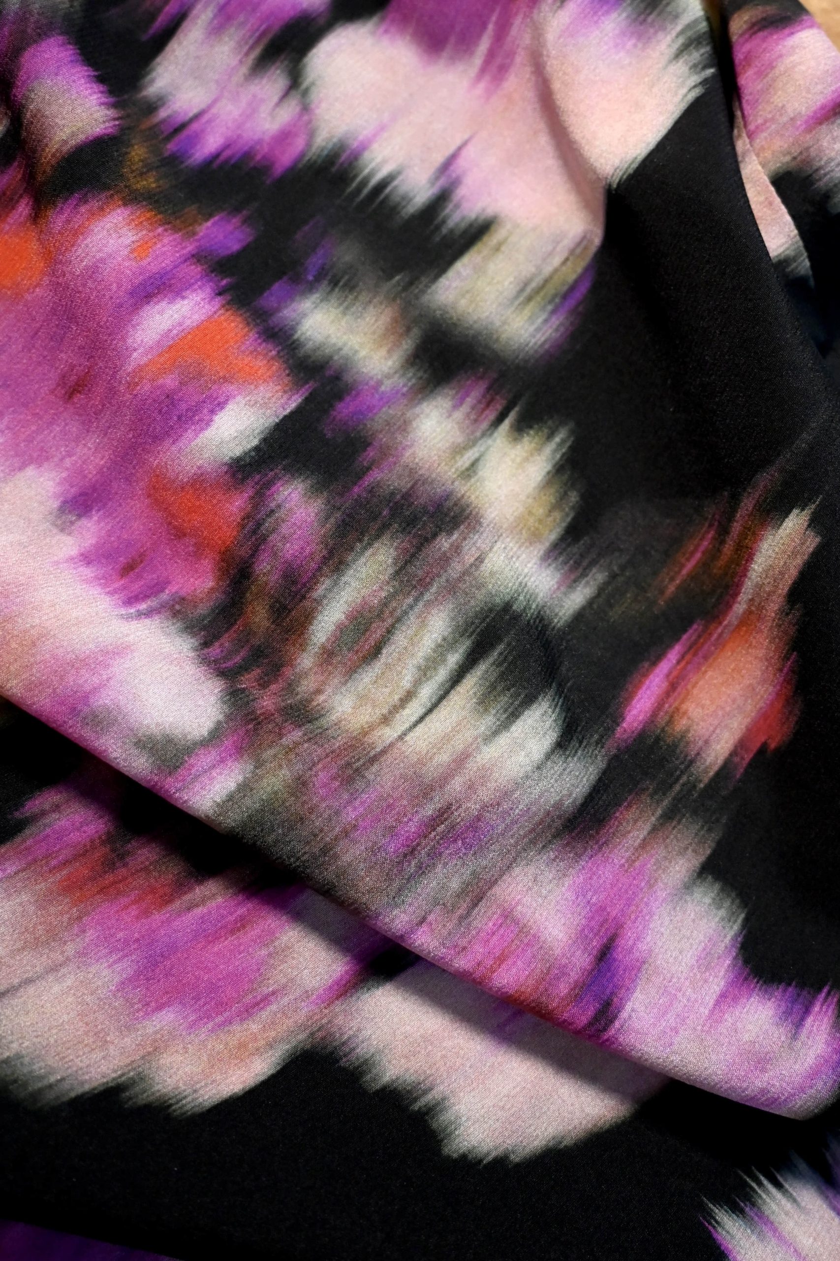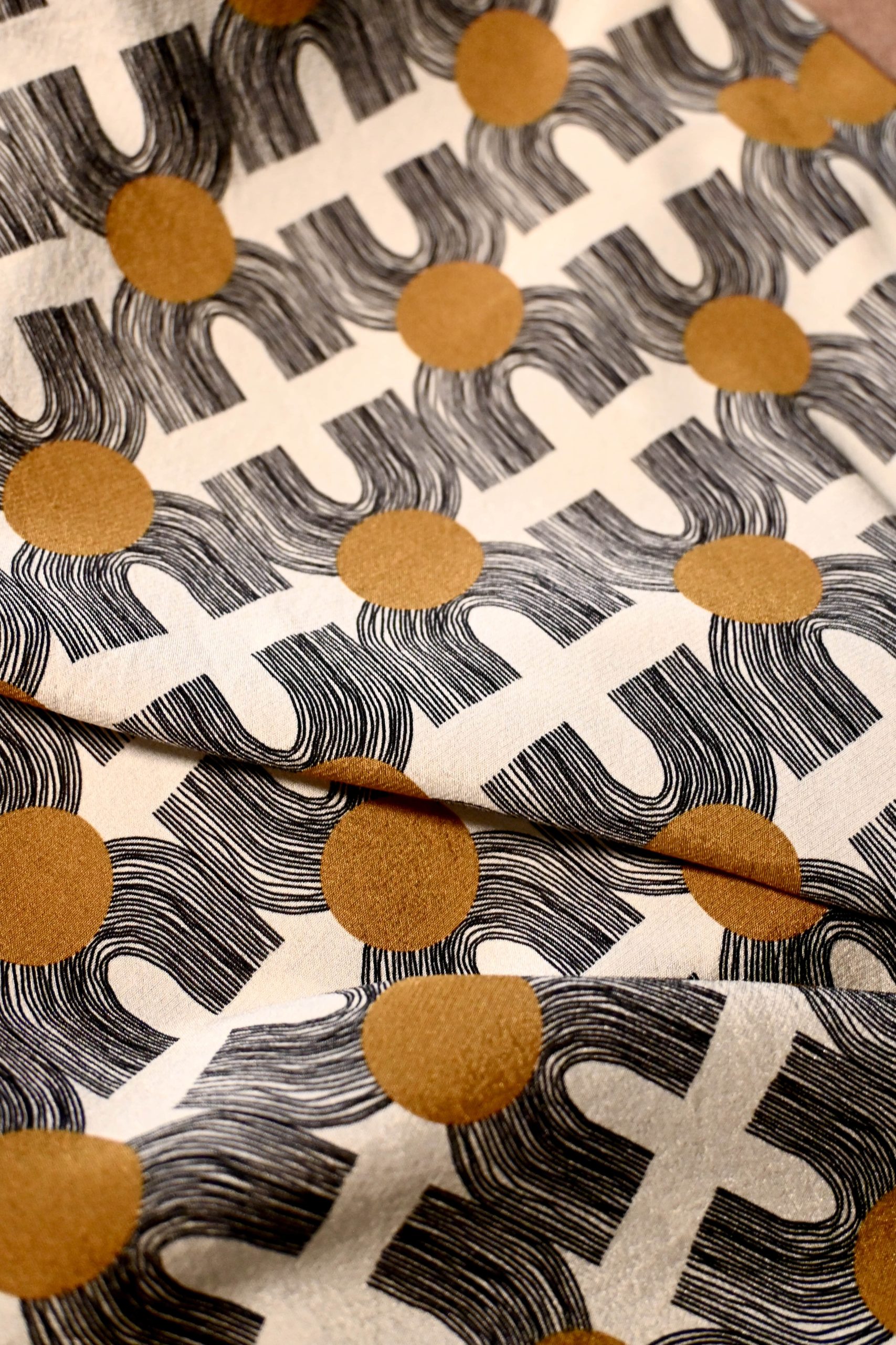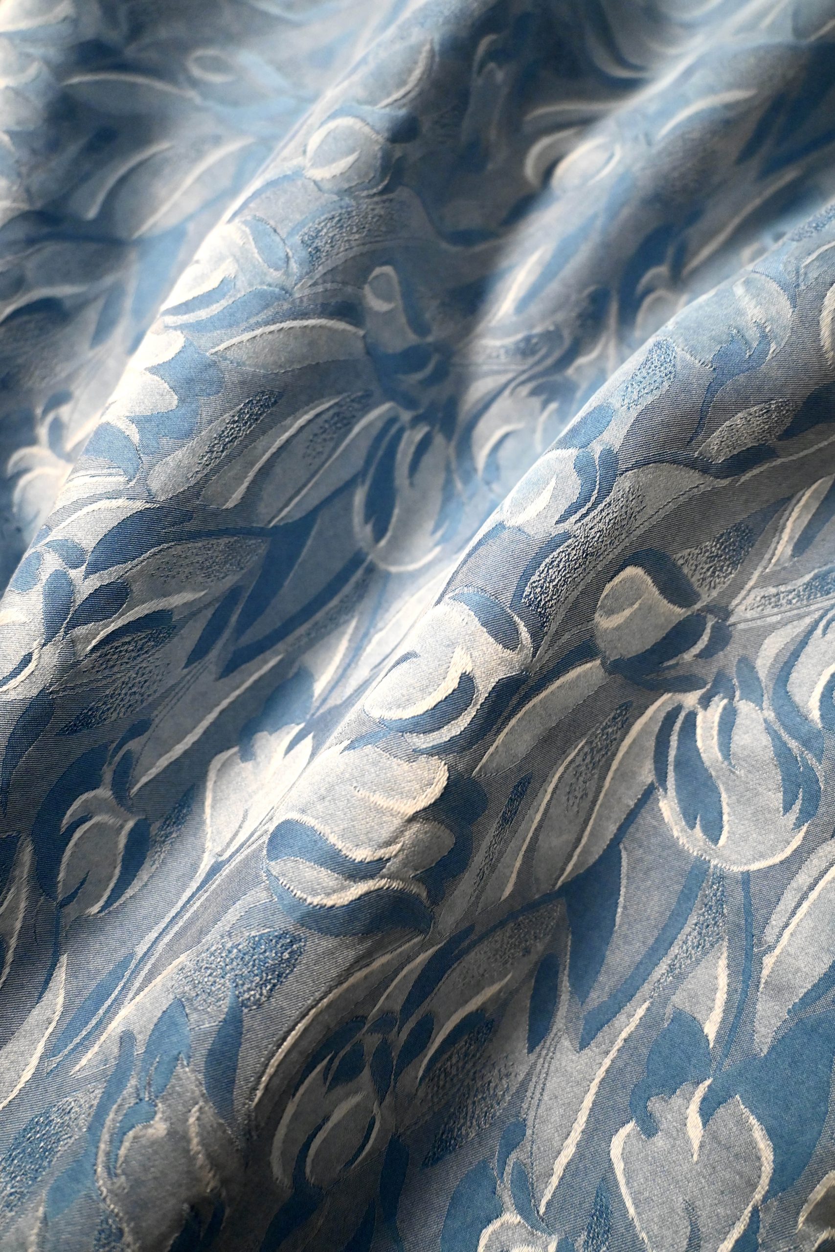 我们多选用天然面料,例如冠乐绉、双绉、砂洗真丝、香云纱、双宫丝、花罗等。不同织法的真丝面料带来丰富的选择,每一款面料的肌理、厚度、光泽感、透光度等也都有不同。