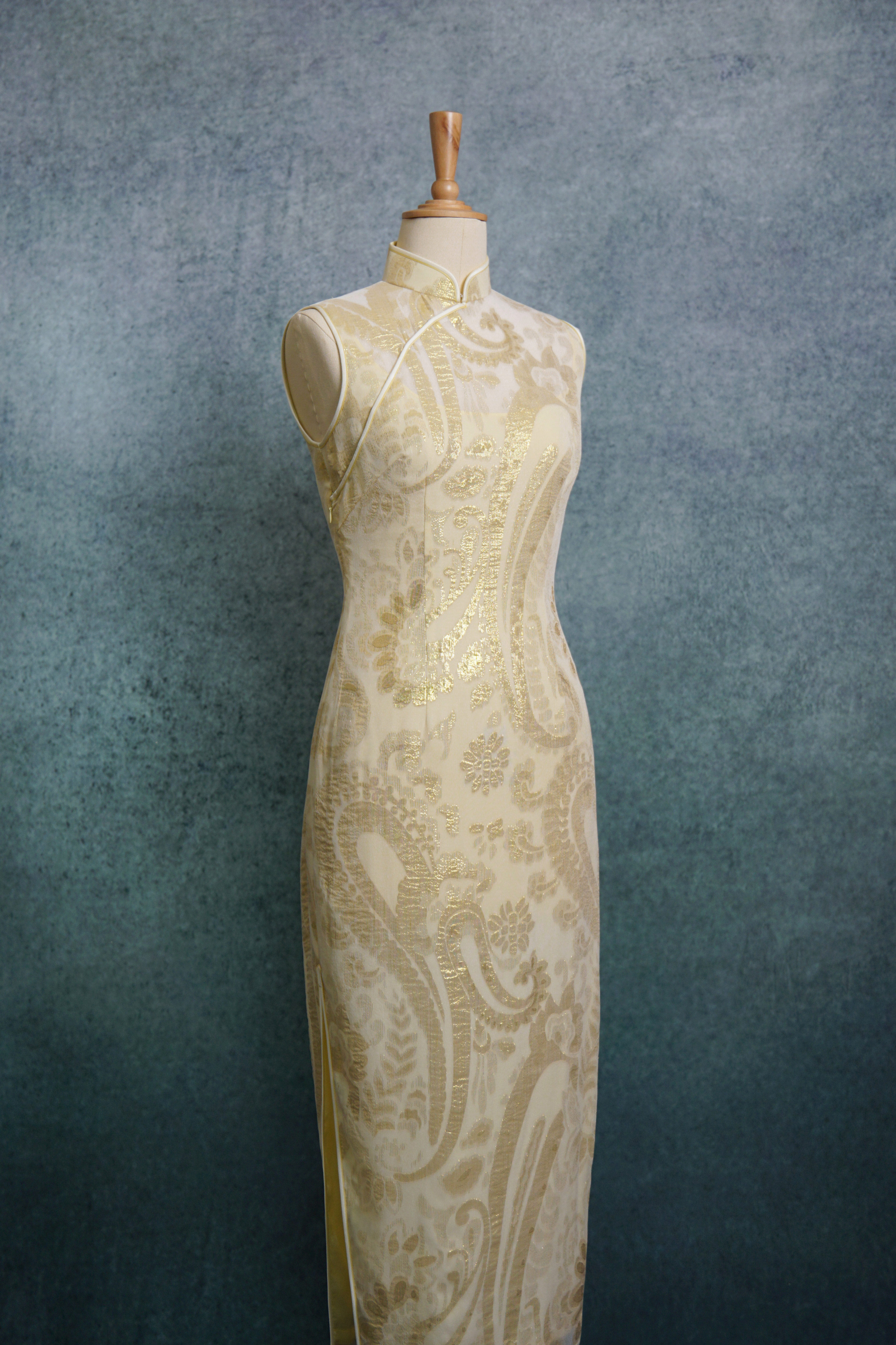浅金花叶佩斯利旗袍