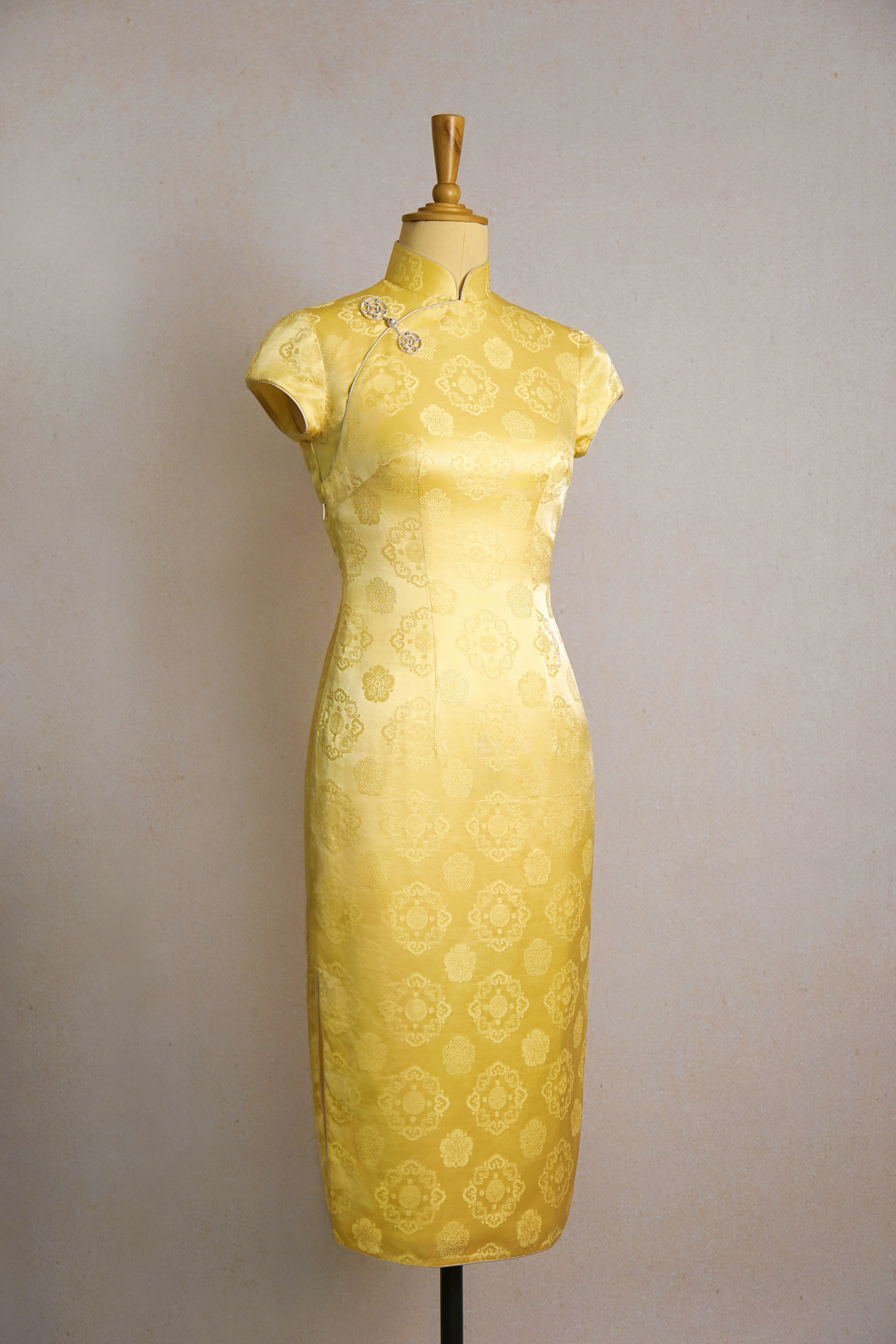 鹅黄如意铜钱纹旗袍
