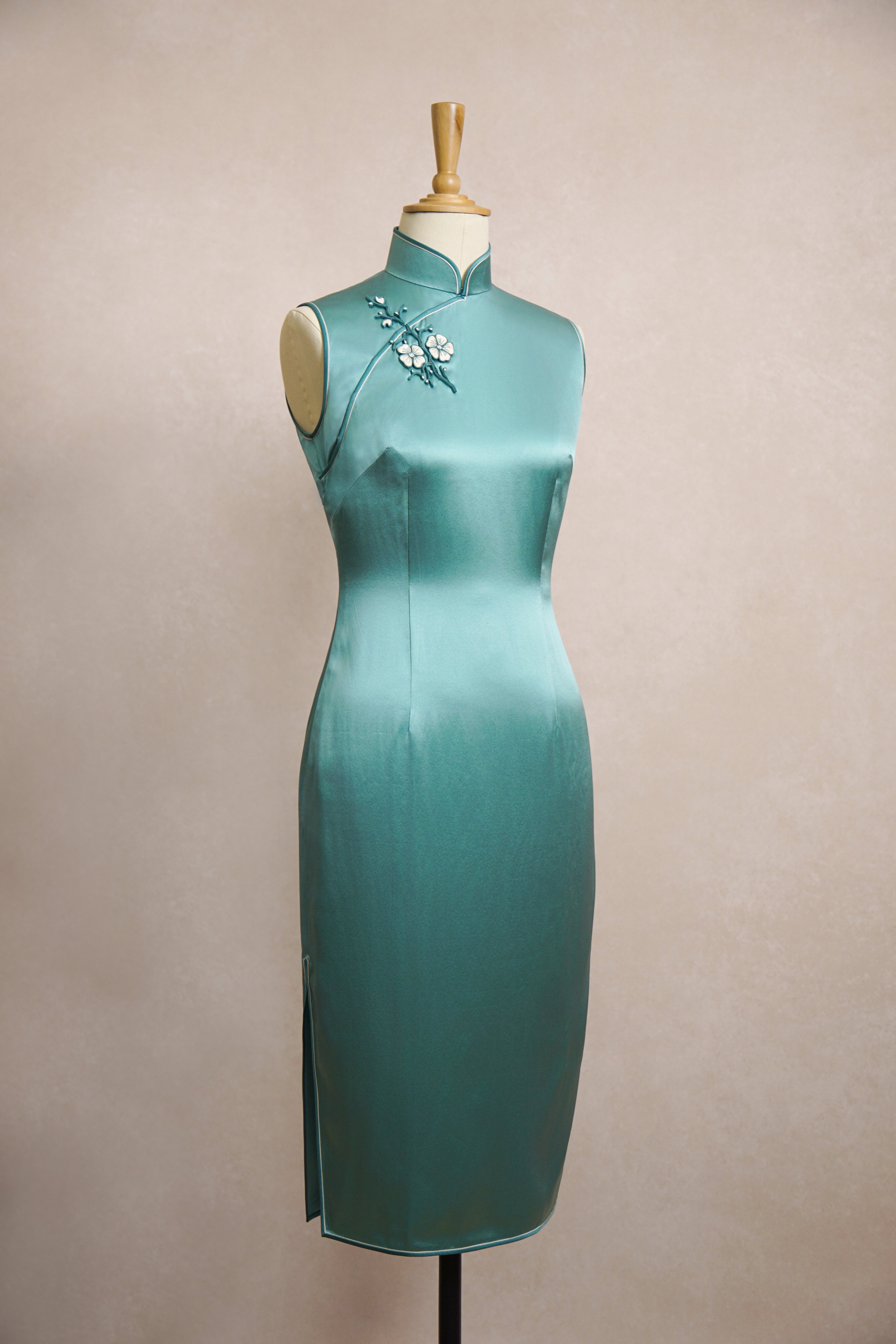 白金缎面钉珠旗袍
